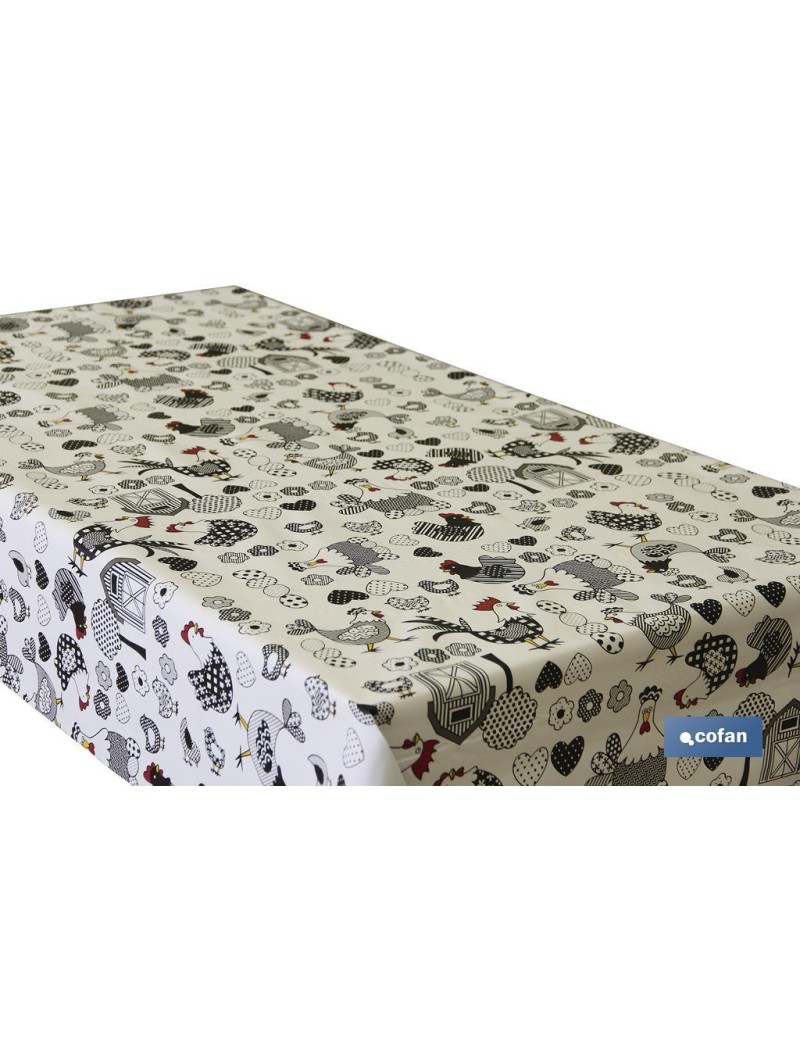 El rollo semihule Modelo Zaatar es una buena elección para su uso en todo tipo de mesas. Fabricado con base de polipropileno TNT tejido sin tejer y soporte de PVC estampado. Diseño alegre con gallinas y flores. Rollo de 1,40 x 25 m de longitud.