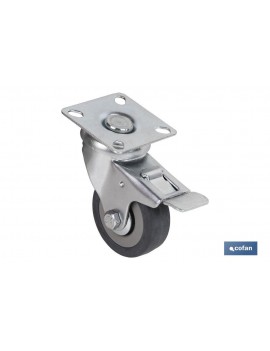 Ruedas de Goma Gris con Placa/Freno para hosteleria, mobiliario, expositores, mostradores, decoración y equipamiento comercial. Pesos de hasta 45 kg