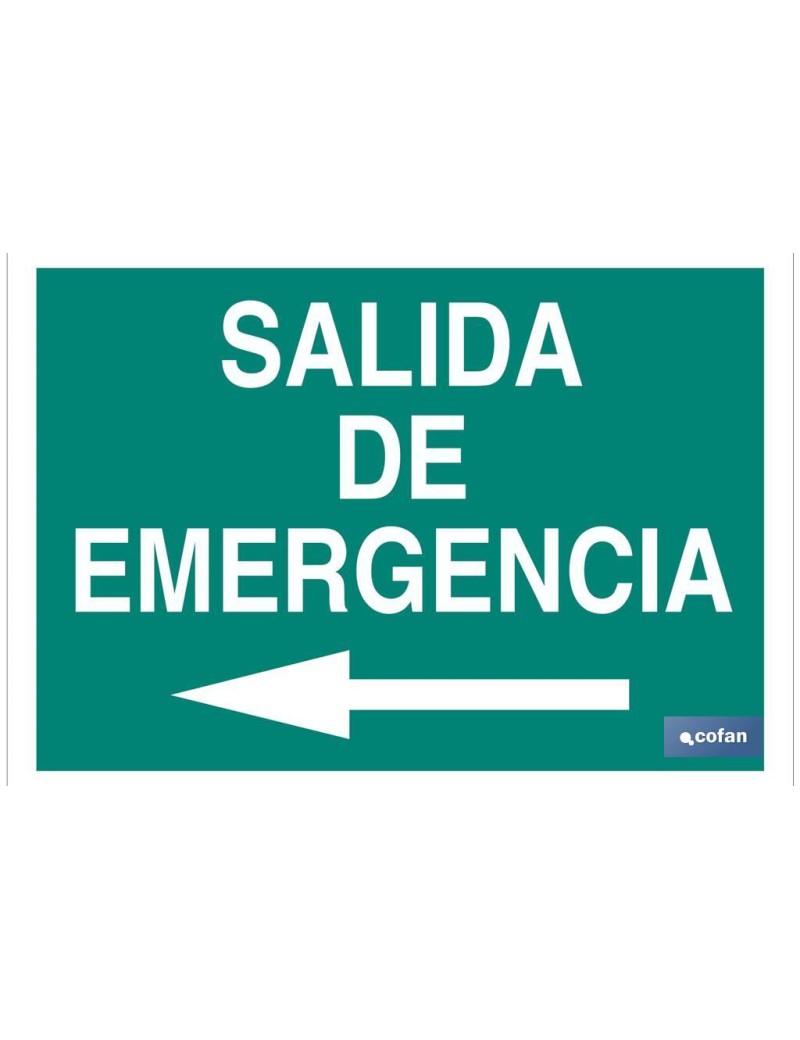 Señal de evacuación con texto Salida de emergencia izquierda. Tamaño y material a elegir (luminiscente y adhesivo)