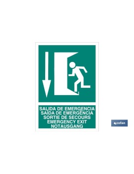 Señal texto y pictograma salida de emergencia abajo luminiscente en varias medidas