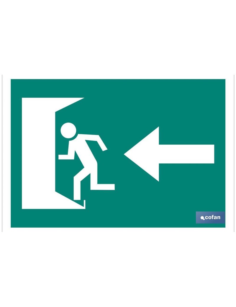 Señal salida de emergencia luminiscente puerta a la izquierda en varias medidas