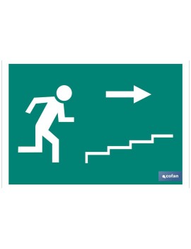 Señal salida subida escalera luminiscente con flecha a la derecha.