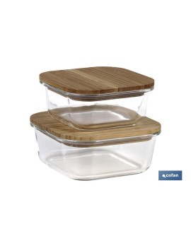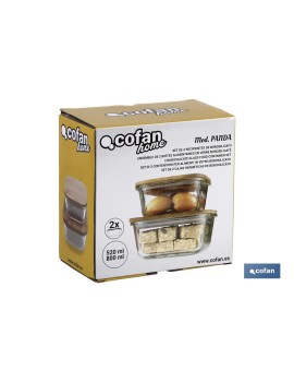 SET DE 2 RECIPIENTES DE BOROSILICATO CON TAPA DE BAMBÚ MODELO PANDA 520 ML - 800 ML (PACK: 1 UDS)