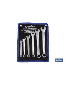 Juegos de llaves combinadas pulidas, en juegos de 6, 8, 10, 12, 17 y 26 piezas.