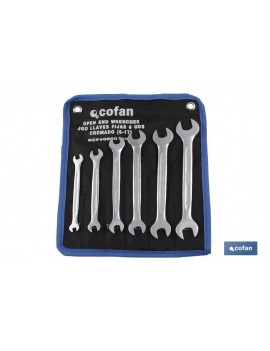 Juegos de llaves fijas de doble boca pulidas, en juegos de 6, 8, 10 y 12 piezas.