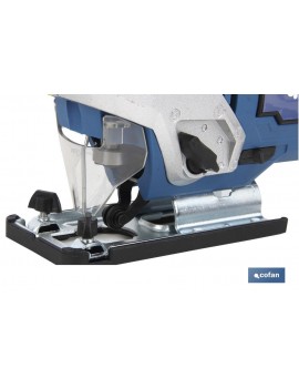 Sierra de calar electrónica 800 W 0-45° (0-3000 rpm.) con láser & LED de 6 velocidades variables y corte inclinado ± 45°, con sistema patentado para el cambio automático sin llave de hojas con vástago T, mecanismo antivibración, acción pendular de 4 posiciones, arranque suave, guía de corte láser.