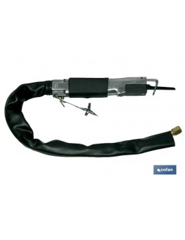 Sierra neumática para trabajos de corte en todos los materiales. Muy fácil de usar por su poco peso y gran facilidad de corte. Regulador de velocidad según el tipo de material. Palanca de accionamiento de total seguridad
