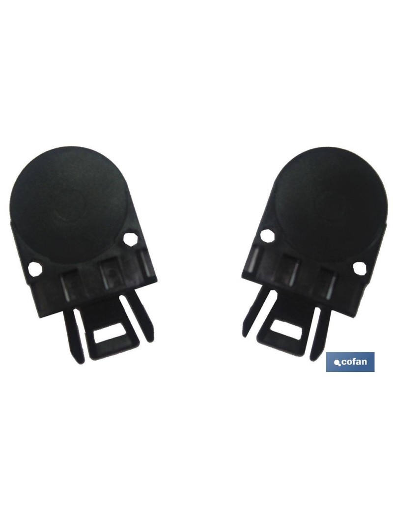 Soporte porta visera para rejilla de protección en los cascos de obra. Color negro. Muy ligero y fácil de utilizar. Se adapta a todo tipo de cascos universales.