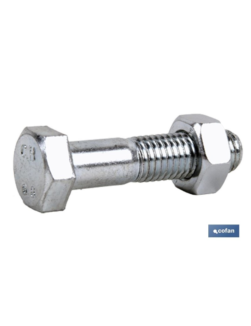 Tornillo cabeza hexagonal + tuerca DIN-931/934, 1/2 rosca parcial, clase BR, color Zincado. Medidas desde M-5 hasta M-24