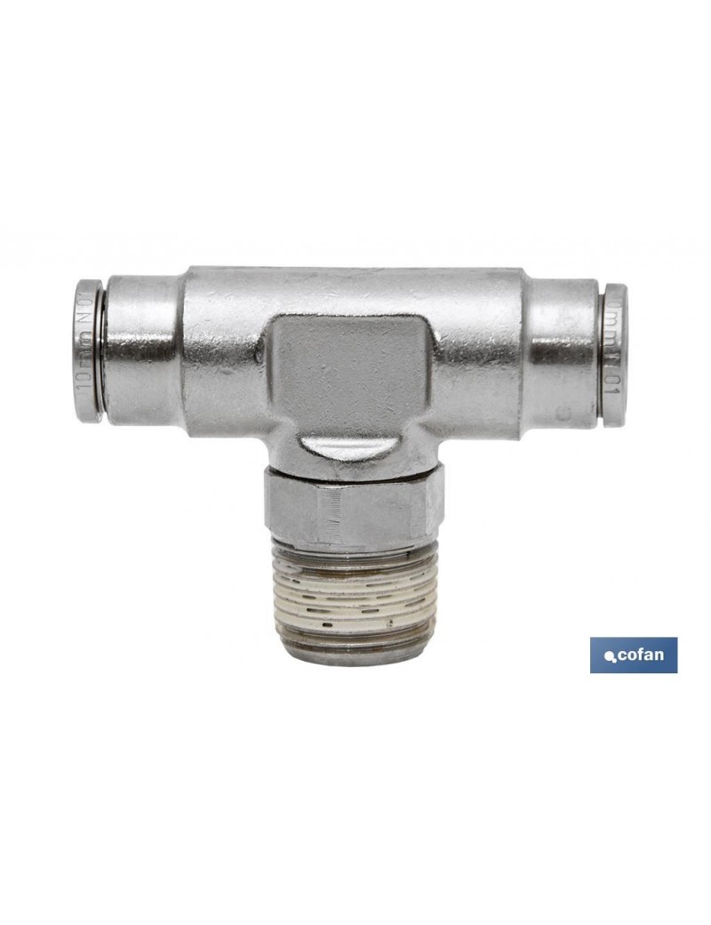 Racores en T roscados metálicos recuperables de conexión instantánea para tubos desde 4mm hasta 8mm de exterior. Adecuados para instalaciones de aire comprimido. Cuerpo totalmente metálico con fácil visión del calibre de la tubería. Total seguridad y estanqueidad, incluso en condiciones límite.