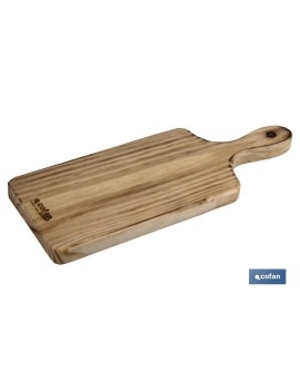 Tabla de corte con forma rectangular fabricada en madera. La medida disponible es 35 x 14 x 2 cm. Apta para ser lavada en el lavavajillas y es ideal para que te dure toda la vida. Se puede usar por ambos lados. Tiene múltiples usos, se pueden cortar todo tipo de alimentos desde carnes y verduras hasta pescado.