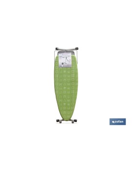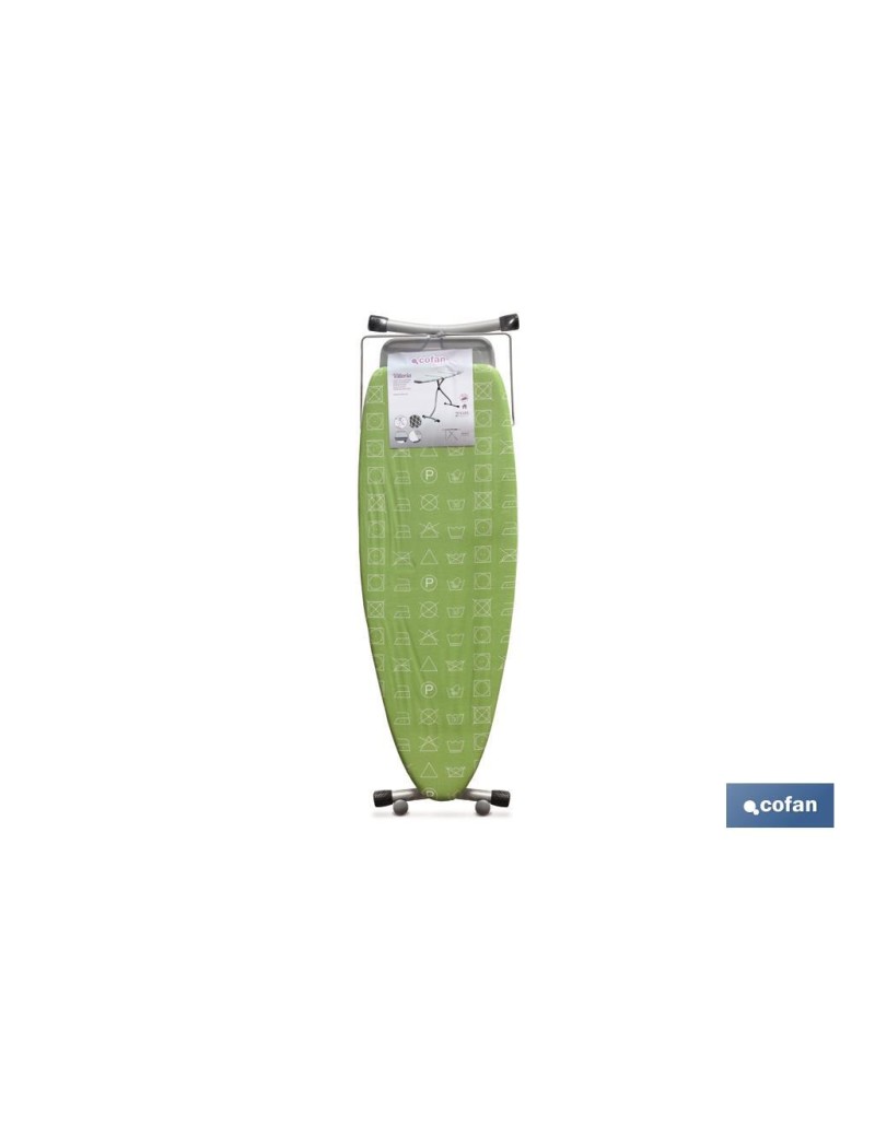 Tabla Planchar Modelo Vittoria modelo con bandeja especial escamoteable para centro de planchado, patas anti movimiento especial para planchar de pien. Varias alturas. Con medidas en 130 x 47 cm.