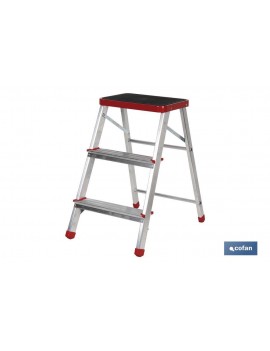 Taburete de aluminio 3 Peldaños EN 131 para 150 kilos con ancho de peldaño en 80 milimetros. Peso del taburete 2.40 kg