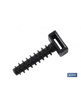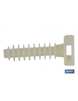 Taco para bridas en nylon para taladro de 6 y 8 mm. Con dentado extra resistente para la mejor fijación. Cabeza reforzada y preparada para el uso de varias medidas de abrazadera.