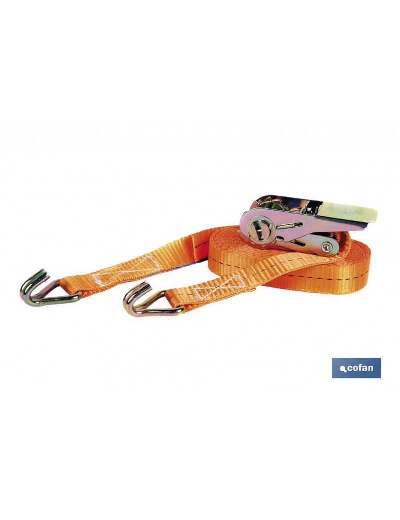 Cinta con tensor de carraca y 4, 5 y 6 metros de longitud.