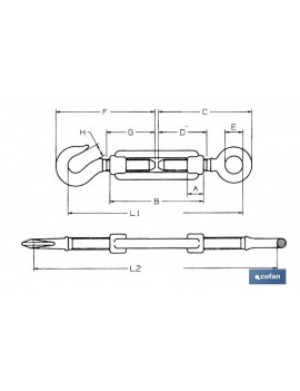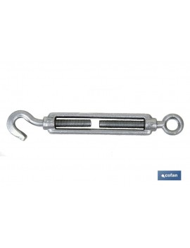 El tensor gancho - anilla zincado DIN-1480 se utiliza para aparejar cables, barras, cabos Diseñado para cargas a tiro directo para tensar o para trincaje. Gran calidad del roscado del cuerpo y de la conexión. También en INOX A-2 Y A-4