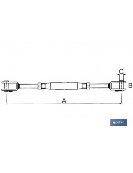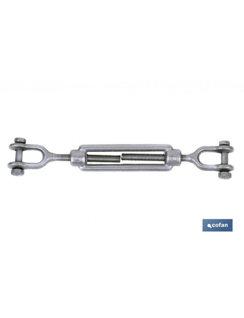El tensor horquilla - horquilla zincado DIN-1480 se utiliza para aparejar cables, barras, cabos Diseñado para cargas a tiro directo para tensar o para trincar. Gran calidad del roscado del cuerpo y de la conexión. También en INOX A-2 Y A-4