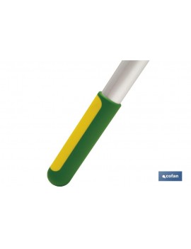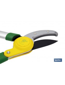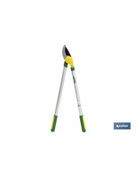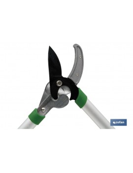 Tijera de poda tipo yunque con cuchilla de acero al carbono con recubrimiento y mangos de aluminio. Su diseño es ligero y sólido que permite ejercer la presión necesaria para el corte. La ergonomía del mango y la potencia de las hojas facilitan el corte hasta en las situaciones más difiíciles. Gracias a su longitud que le permite alcanzar las ramas en altura.