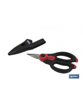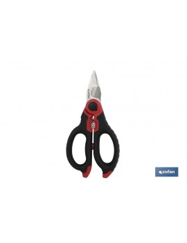 Tijeras electricista profesional. Punta recta de 160mm. Gracias a su multifuncionalidad esta tijera vale como para pelar cables como para crimprar.