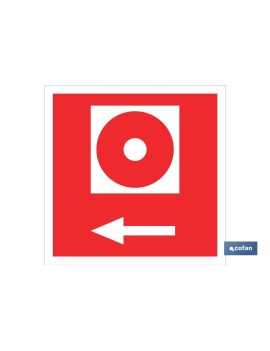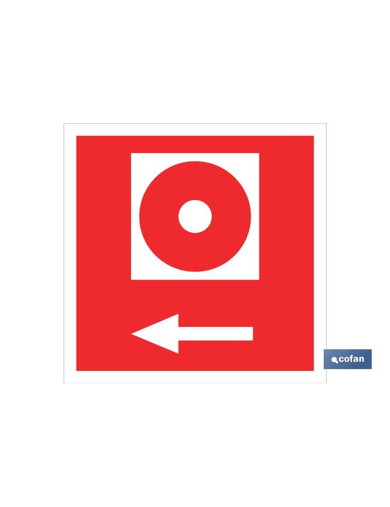 Señal Timbre de alarma luminiscente con flecha a la izquierda en varias medidas.
