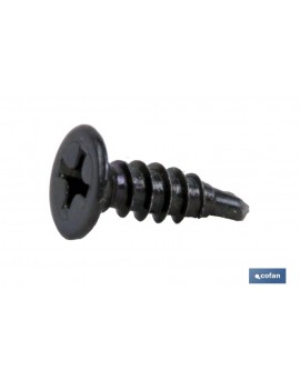 Tornillo autotaladrante lacado negro cabeza extraplana phillips. Ideal para herrajes. Medidas de 4,2x14 y 4,2x23mm