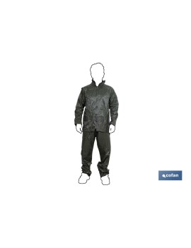Traje de agua con triple capa, compuesto por chaqueta y pantalón. Fabricado en PVC y bañado en Poliéster. Disponible en color Azul Marino, Verde y Amarillo. Sus costuras selladas por calor ofrecen un 100% de impermeabilidad. Tiene una excelente calidad para ser usado con cualquier temperatura. Es ideal para trabajos como la minería, la construcción, la industria, la agricultura etc. Las tallas disponibles son M, L, XL, XXL y XXXL.