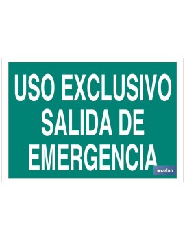 Señal de evacuación luminiscente Uso exclusivo Salida de Emergencia.