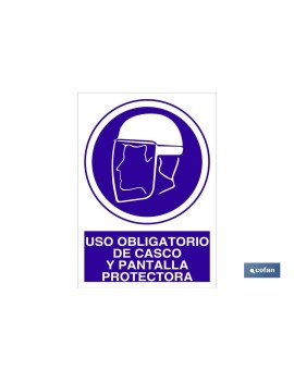 Señal de obligación Uso obligatorio de casco y pantalla protectora.