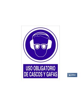 Señal de obligación Uso obligatorio de cascos y gafas.