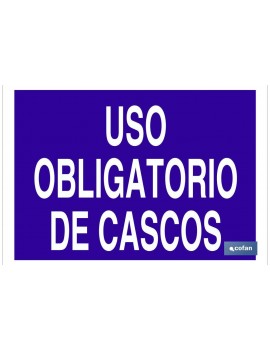 Señal de obligación con texto Uso obligatorio de cascos.