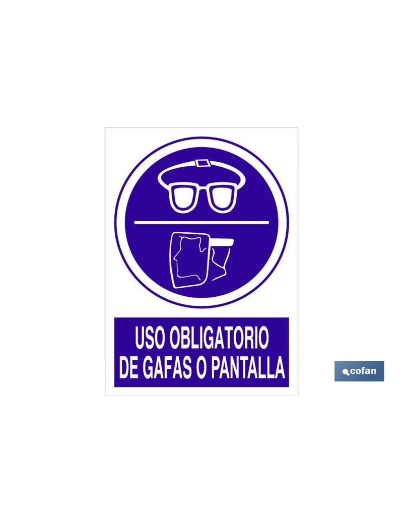 Señal de obligación Uso obligatorio de gafas o pantalla.