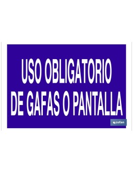 Señal de obligación con texto Uso obligatorio de gafas o pantalla.