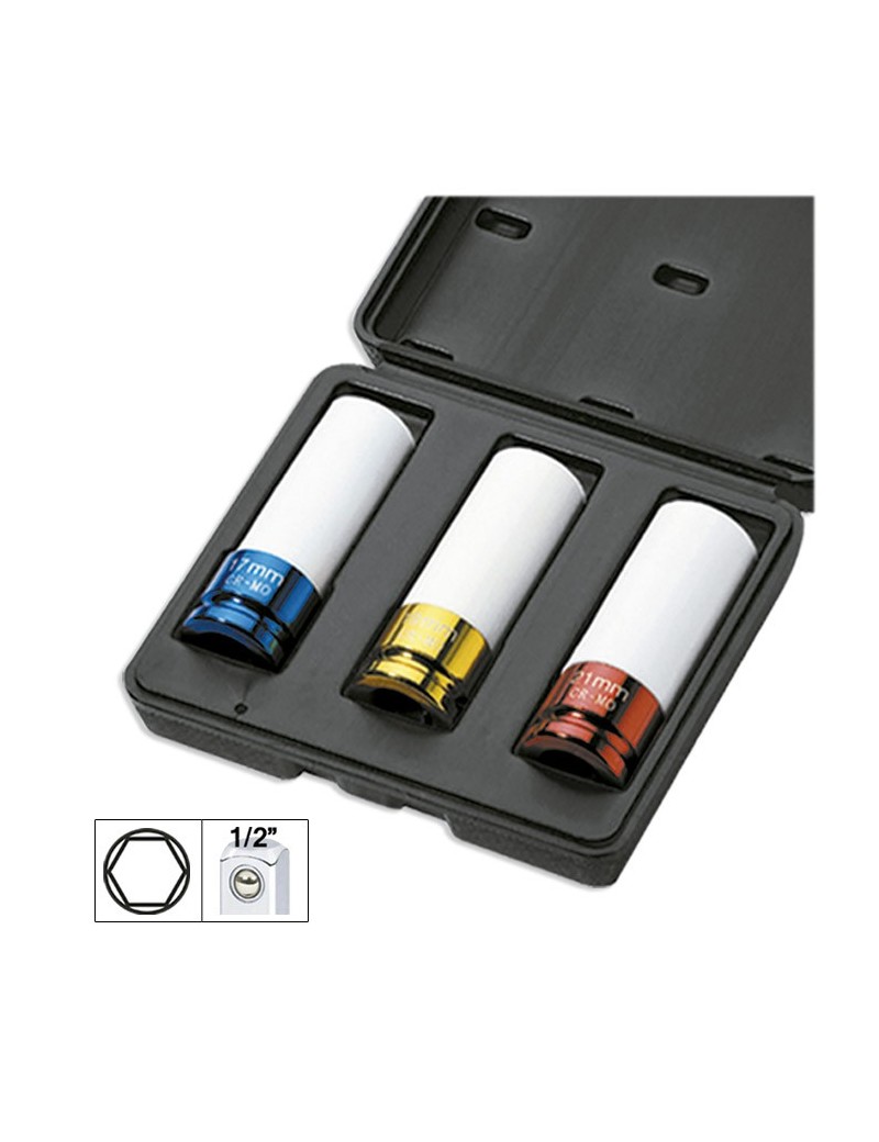 KIT DE 3 VASOS IMPACTO DE 1/2" ESPECIAL EXTRACCIÇ?N RUEDAS