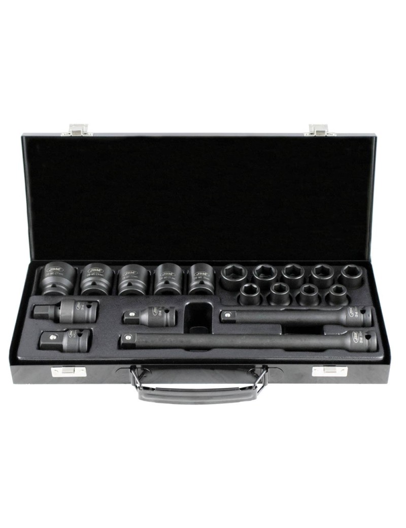 SET DE 19 PIEZAS DE IMPACTO DE 1/2" CON 14 VASOS HEXAGONALES + ADAPTADORES