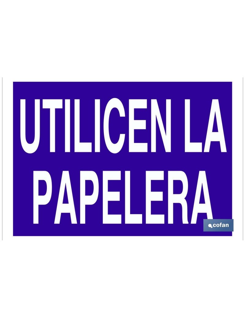 Señal de obligación con texto Usen la papelera.