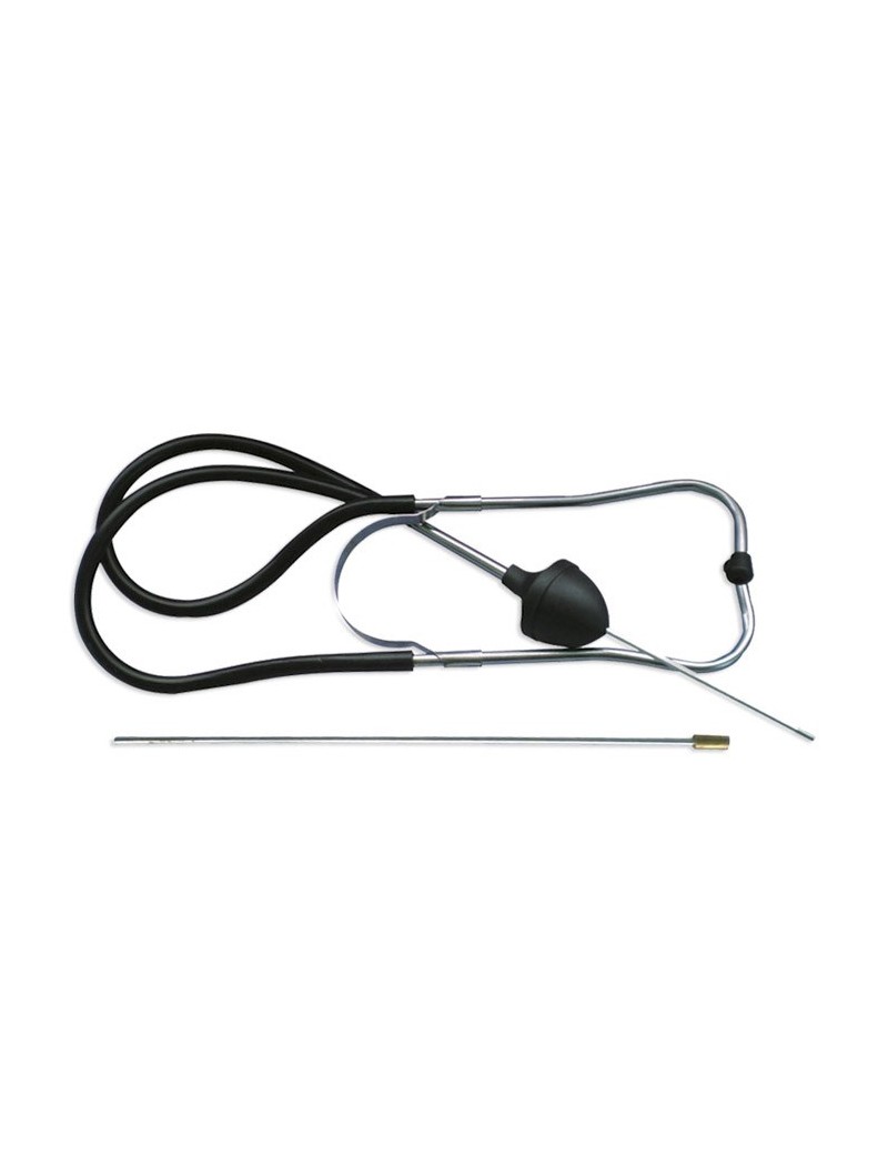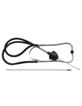 Amplifica y localiza ruidos internos mecánicos y de paso de fluidos. Localiza la fuente de ruido del motor rápidamente. Escuche los problemas de localización racional de los flujos de agua, petróleo, gas o vapor. Mango a prueba de golpes. Largo total: 910mm Diametro auriculares: 12mm Punta/Largo sonda: 320mm