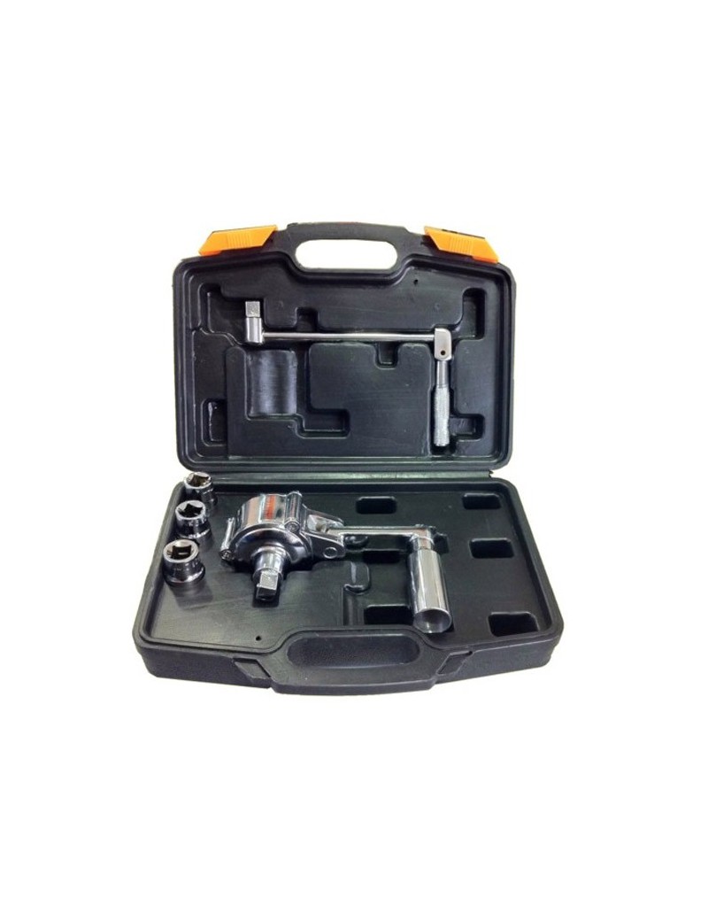 Contiene: 1 multiplicador de par 1 barra de EXTENSION³n 90º Vasos de 17mm, 19mm y 21mm Rango 1:18 Par max. salida: 360Nm Par max. torsión: 800Nm