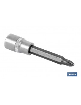 Llaves de vaso 1/2\' cromo vanadio con punta larga 65mm pozidrive de PZ-2 y PZ-3