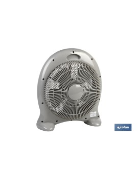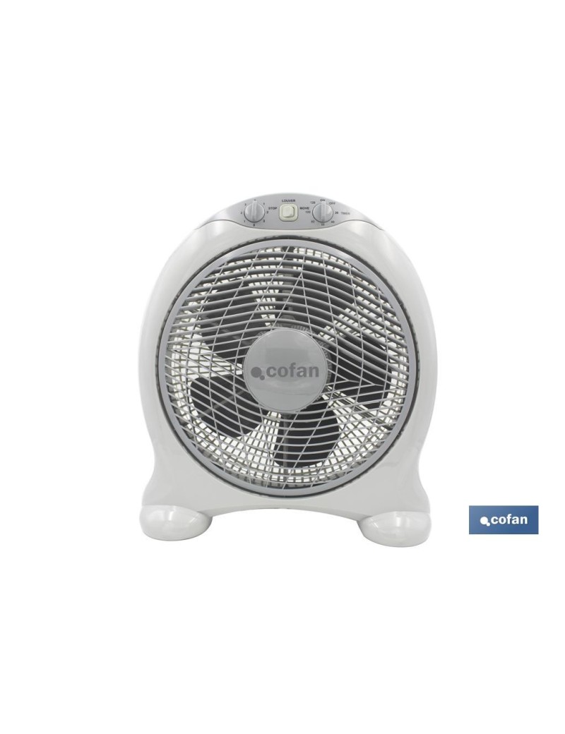 Ventilador Modelo Cierzo con Temporizador de 120 minutos y gran caudal de aire. Disponible en color beige claro. Cuenta con una potencia de 50 W y una rejilla frontal giratoria de 360°. El ventilador está compuesto por 5 palas de polipropileno, 3 velocidades con interruptor giratorio, interruptor de encendido / apagado. Las medidas de la carcarsa son de 30 centímetros y cuentan con asa integrada en la carcasa. Motor con protector contra sobrecalentamiento. Las medidas del ventilador modelo Cierzo son de 39,6 x 15,5 x 45,5 centímetros y la longitud del cable de 1,60 metros. Su peso es de 1,77 kg.