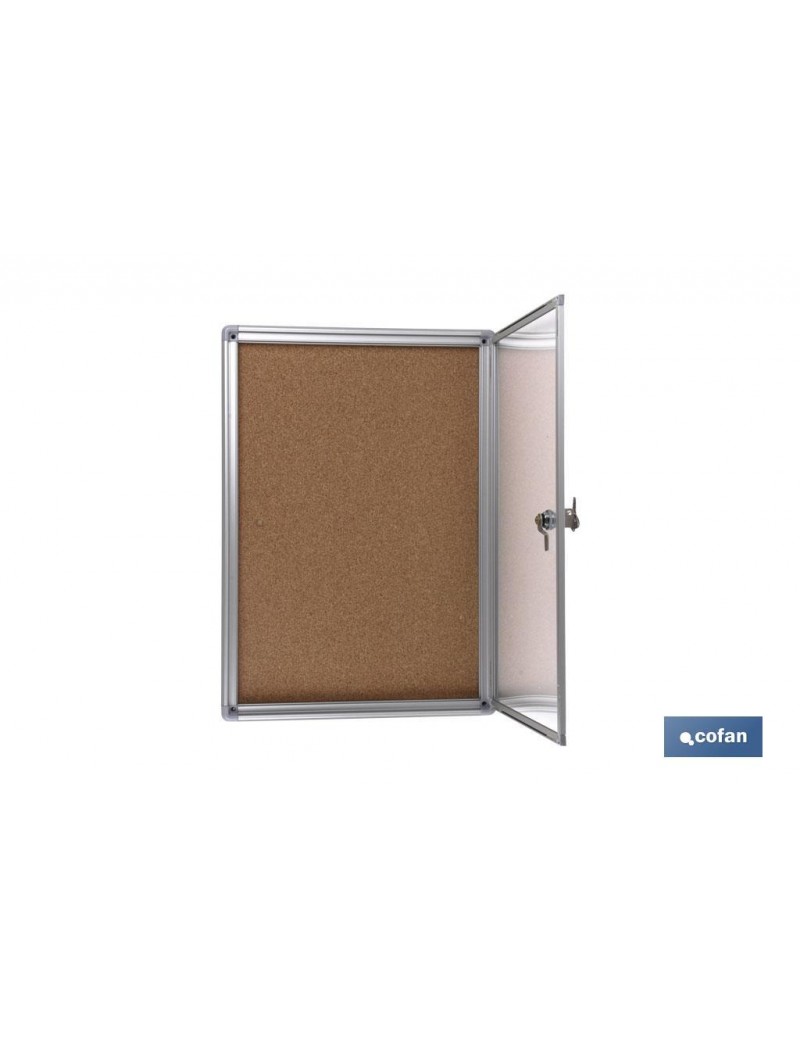Vitrina de Corcho con cierre de llave con medidas de 300x500 y 500x700mm.