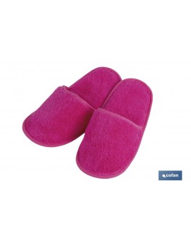 Zapatillas para baño en color fucsia. Están fabricadas de 100 % algodón de muy buena calidad, con un gramaje de 500 g/m2. Son muy cómodas, suaves y absorbentes. Talla M y L.